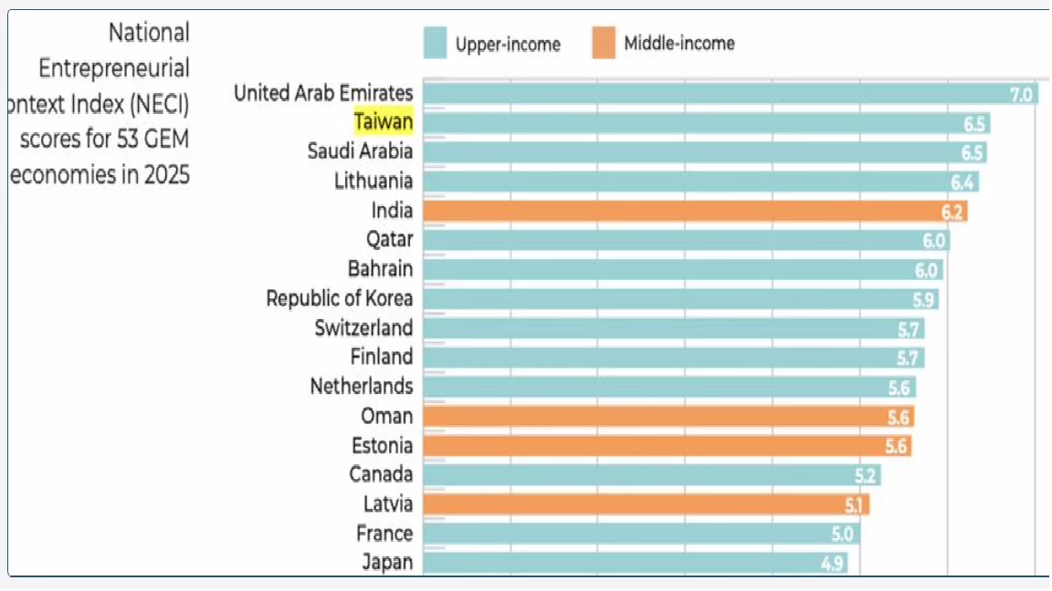 GEM全球報告公布 台灣的創業環境排名世界第2  僅次於阿拉伯聯合大公國