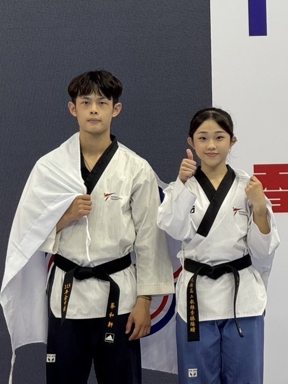 我國跆拳選手吳庭瑜與蔡和軒參加2024年…