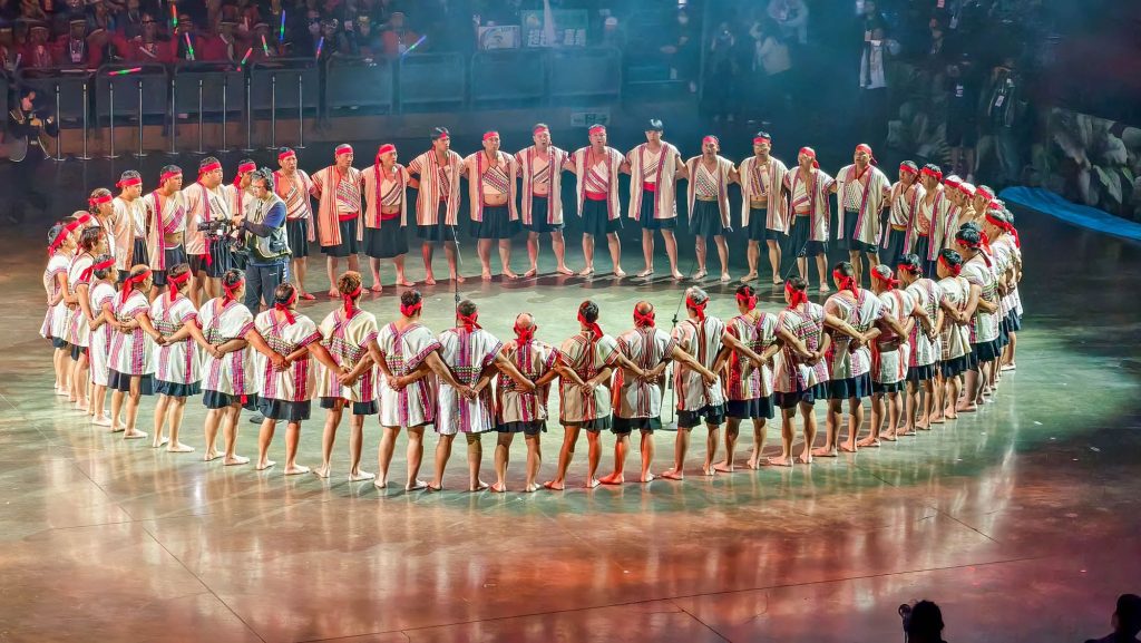 今日下午開幕典禮以族群展演為始,萬山部落以「曙光」古瑤,傳遞了迎向光明、希望的意涵,創作『旭日曙光,映照山川』希望透過族群之力帶給眾人希望與祝福,再以台灣首支平埔原住民大武瓏族組成的大滿舞團演出『勇敢重生,榮耀能量』,最後邀請台灣邦交國馬紹爾聯隊帶來舞蹈演出,以『南島共榮,世界同行』橫跨族群與國籍的精湛表演。