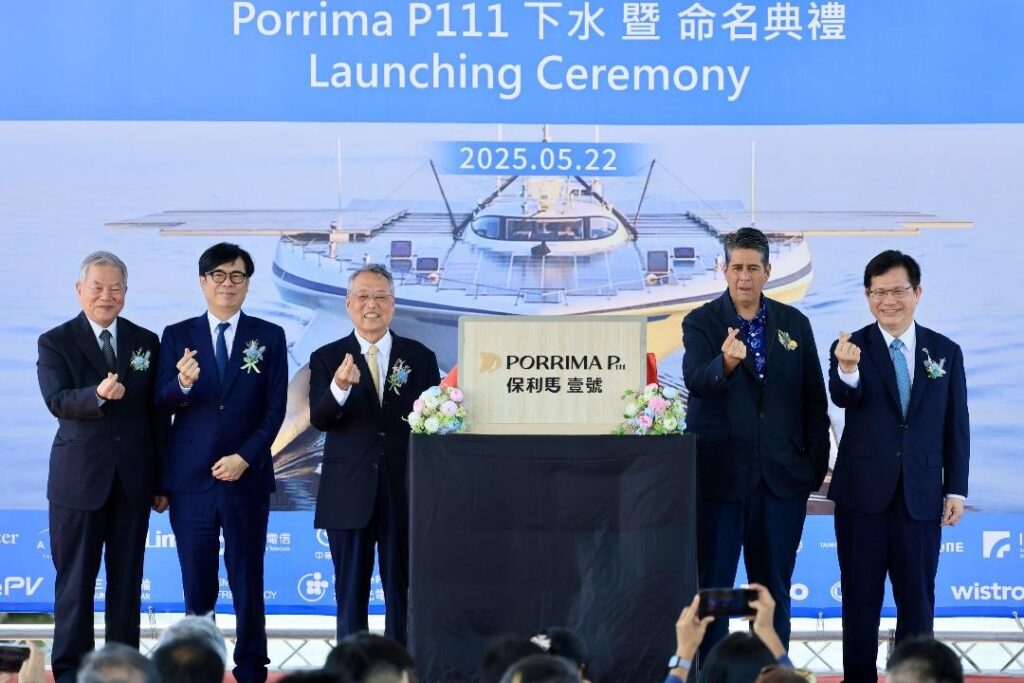 高雄積極推動淨零永續與海洋科技發展,由宏碁集團創辦人施振榮號召打造的零碳排未來船「保利馬1號」,今日於興達港BOT修造船區正式完成下水,該船採「臺灣設計、在地建造」模式,領先全球的船舶創新設計,整合國內頂尖供應鏈技術,展現我國綠色能源與海洋科技創新實力。