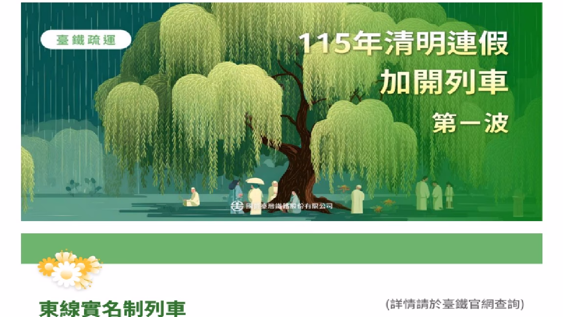 臺鐵公司因應115年清明節疏運旅客需要,…
