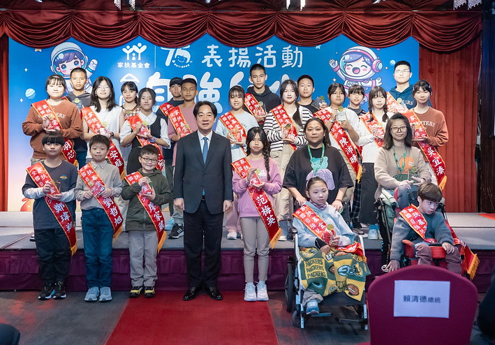 最後,賴總統表示,因為全國人民的努力,國家進步、社會進步、經濟也在進步,政府才有力量做大家的後盾。他也再次感謝家扶基金會及所有贊助單位的付出,並勉勵所有小朋友保有自信。 隨後,賴總統頒發獎牌及禮物予現場獲獎的自強兒少。